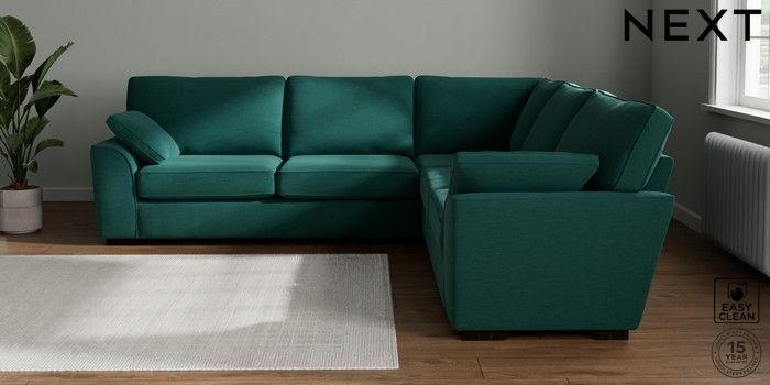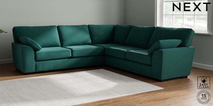 7.2.10 Stamford Large Corner Sofa - Universal Fine Chenille Easy Clean Dark Juniper Green Large Square Angle - Dark | Made Click here to use our website with more accessibility support, for example screen readers