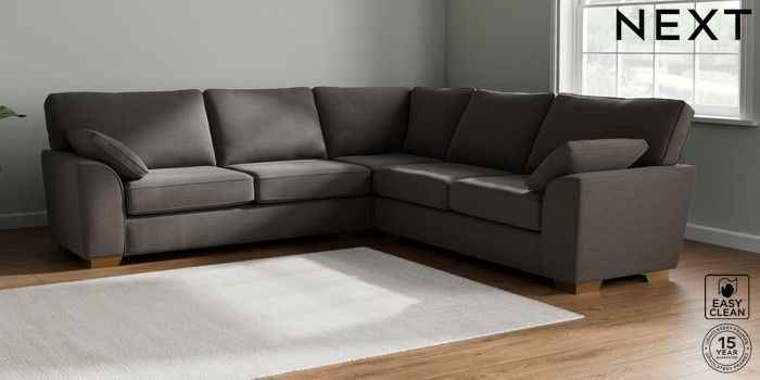 7.2.10 Stamford Large Corner Sofa - Universal Fine Chenille Easy Clean Dark Smoke Grey Large Square Angle - Brushed Brass | Made Click here to use our website with more accessibility support, for example screen readers