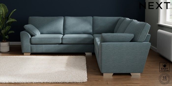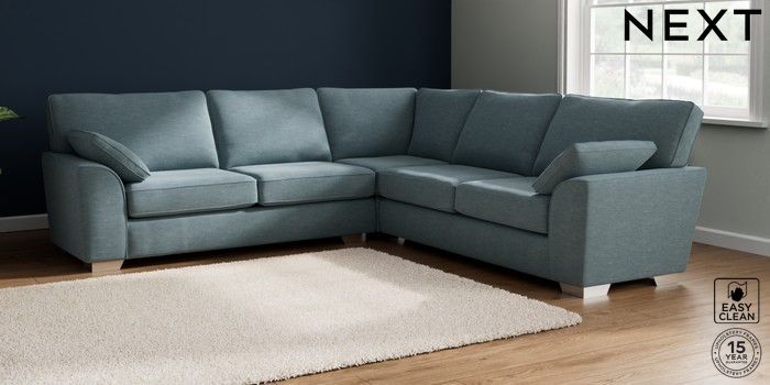 7.2.10 Stamford Large Corner Sofa - Universal Fine Chenille Easy Clean Mid Blue Large Square Angle - Chrome Metal | Made Click here to use our website with more accessibility support, for example screen readers