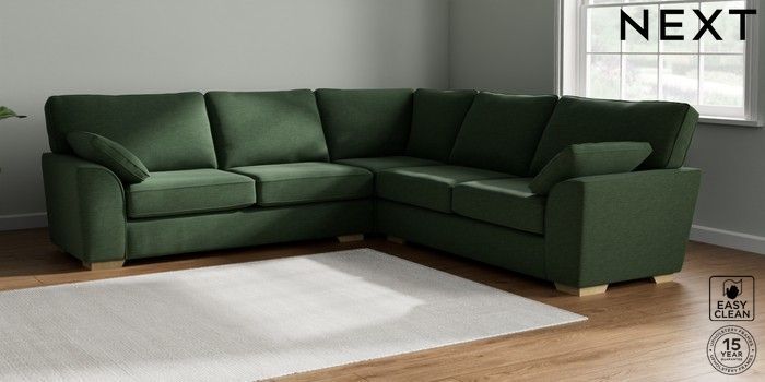 7.2.10 Stamford Large Corner Sofa - Universal Fine Chenille Easy Clean Mid Khaki Green Large Square Angle - Light | Made Click here to use our website with more accessibility support, for example screen readers