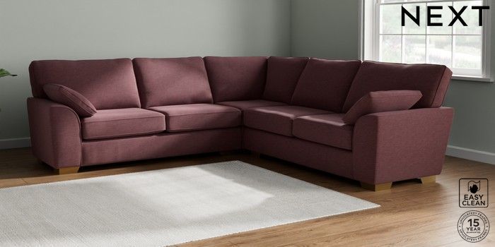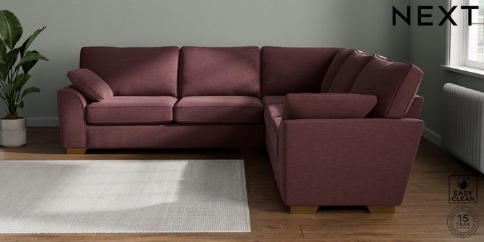 7.2.10 Stamford Large Corner Sofa - Universal Fine Chenille Easy Clean Mid Mulberry Purple Large Square Angle - Brushed Brass | Made Click here to use our website with more accessibility support, for example screen readers