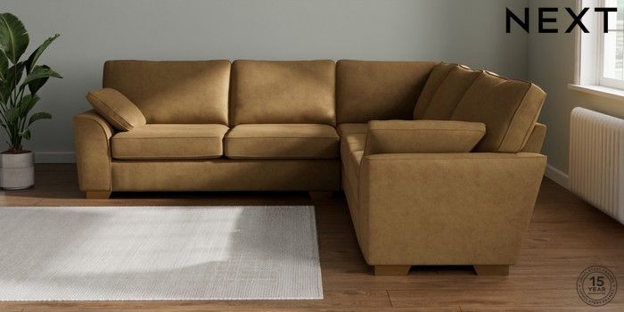 7.2.10 Stamford Large Corner Sofa - Universal Luxe Chenille Honey Yellow Large Square Angle - Brushed Brass | Made Click here to use our website with more accessibility support, for example screen readers
