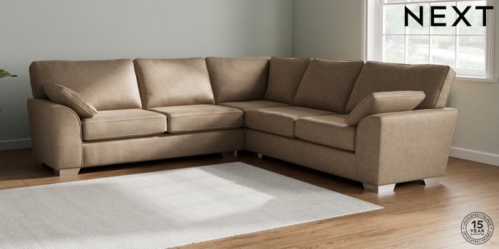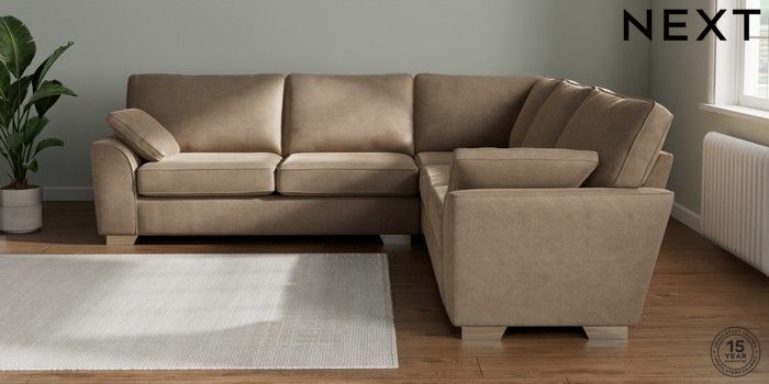 7.2.10 Stamford Large Corner Sofa - Universal Luxe Chenille Mid Camel Beige Large Square Angle - Chrome Metal | Made Click here to use our website with more accessibility support, for example screen readers