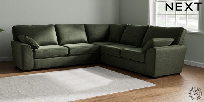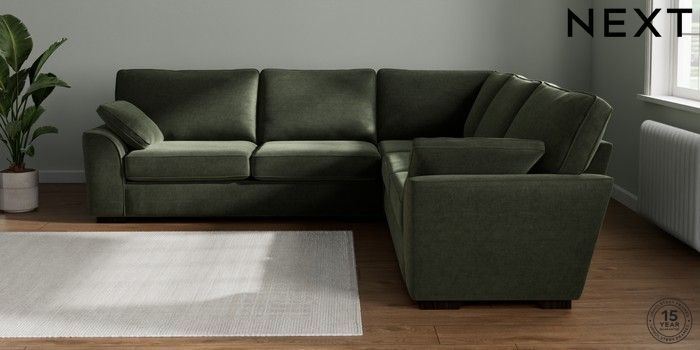 7.2.10 Stamford Large Corner Sofa - Universal Luxe Chenille Mid Green Large Square Angle - Dark | Made Click here to use our website with more accessibility support, for example screen readers