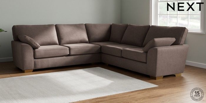 7.2.10 Stamford Large Corner Sofa - Universal Luxe Chenille Mink Brown Large Square Angle - Brushed Brass | Made Click here to use our website with more accessibility support, for example screen readers