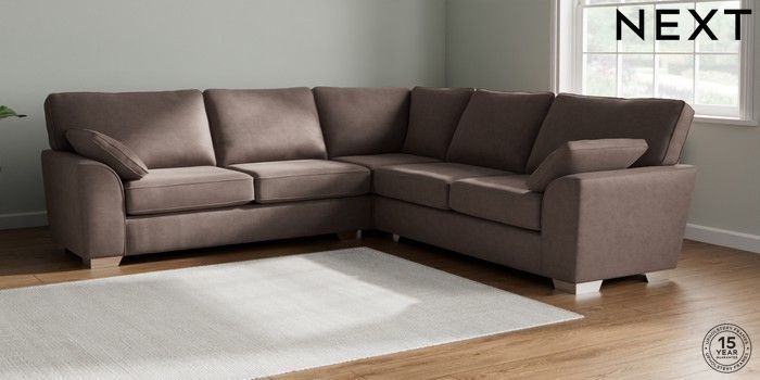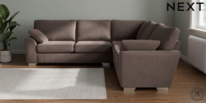 7.2.10 Stamford Large Corner Sofa - Universal Luxe Chenille Mink Brown Large Square Angle - Chrome Metal | Made Click here to use our website with more accessibility support, for example screen readers