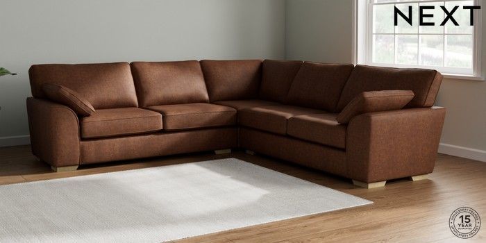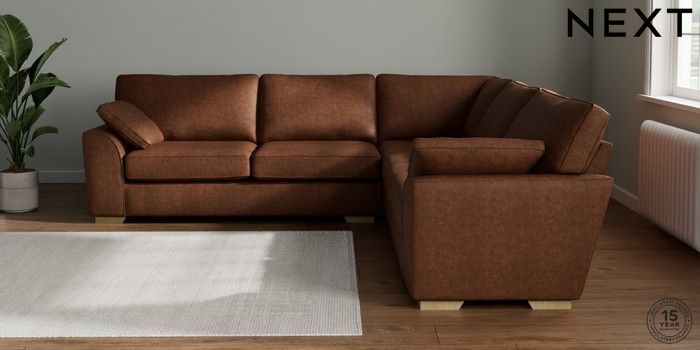7.2.10 Stamford Large Corner Sofa - Universal Monza Faux Leather Easy Clean Chestnut Brown Large Square Angle - Light | Made Click here to use our website with more accessibility support, for example screen readers