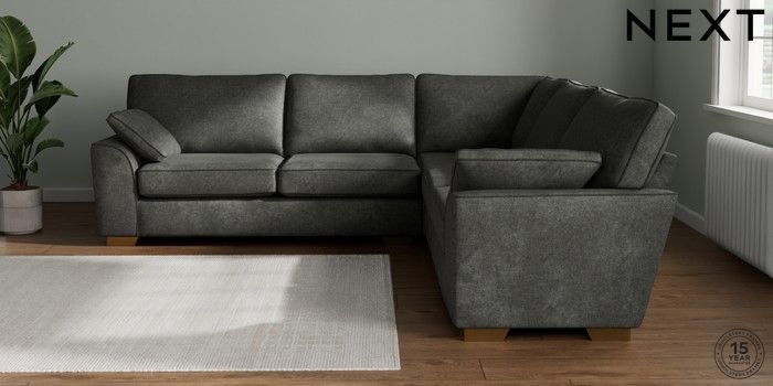 7.2.10 Stamford Large Corner Sofa - Universal Plush Chenille Dark Grey Large Square Angle - Brushed Brass | Made Click here to use our website with more accessibility support, for example screen readers