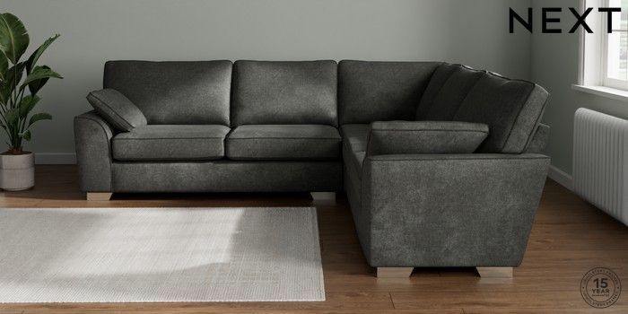 7.2.10 Stamford Large Corner Sofa - Universal Plush Chenille Dark Grey Large Square Angle - Chrome Metal | Made Click here to use our website with more accessibility support, for example screen readers