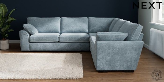 7.2.10 Stamford Large Corner Sofa - Universal Plush Chenille Light Blue Large Square Angle - Dark | Made Click here to use our website with more accessibility support, for example screen readers