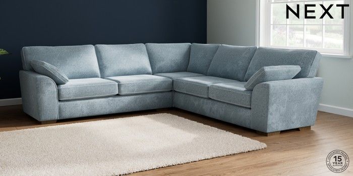 7.2.10 Stamford Large Corner Sofa - Universal Plush Chenille Light Blue Large Square Angle - Mid | Made Click here to use our website with more accessibility support, for example screen readers