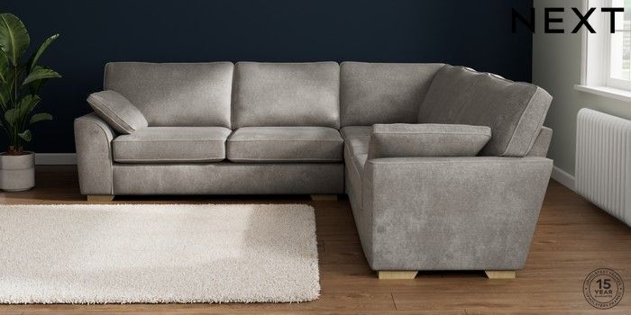 7.2.10 Stamford Large Corner Sofa - Universal Plush Chenille Light Grey Large Square Angle - Light | Made Click here to use our website with more accessibility support, for example screen readers