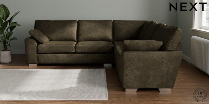 7.2.10 Stamford Large Corner Sofa - Universal Plush Chenille Moss Green Large Square Angle - Chrome Metal | Made Click here to use our website with more accessibility support, for example screen readers