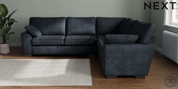 7.2.10 Stamford Large Corner Sofa - Universal Plush Chenille Slate Blue Large Square Angle - Gunmetal | Made Click here to use our website with more accessibility support, for example screen readers
