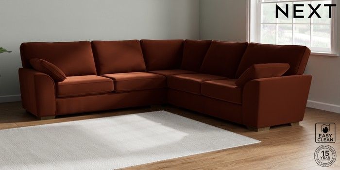 7.2.10 Stamford Large Corner Sofa - Universal Plush Velvet Easy Clean Ginger Orange Large Square Angle - Mid | Made Click here to use our website with more accessibility support, for example screen readers