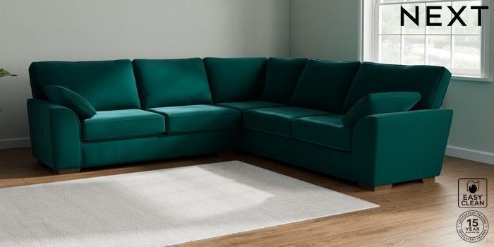 7.2.10 Stamford Large Corner Sofa - Universal Plush Velvet Easy Clean Juniper Green Large Square Angle - Mid | Made Click here to use our website with more accessibility support, for example screen readers