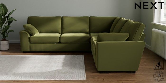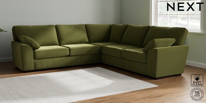 7.2.10 Stamford Large Corner Sofa - Universal Plush Velvet Easy Clean Mid Olive Green Large Square Angle - Dark | Made Click here to use our website with more accessibility support, for example screen readers