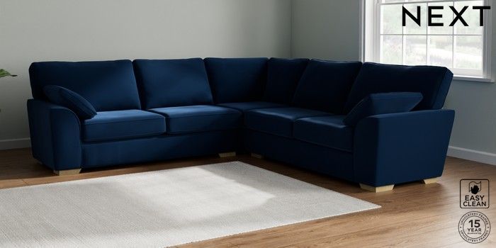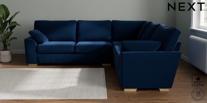 7.2.10 Stamford Large Corner Sofa - Universal Plush Velvet Easy Clean Navy Blue Large Square Angle - Light | Made Click here to use our website with more accessibility support, for example screen readers