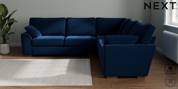 7.2.10 Stamford Large Corner Sofa - Universal Plush Velvet Easy Clean Navy Blue Large Square Angle - Mid | Made Click here to use our website with more accessibility support, for example screen readers