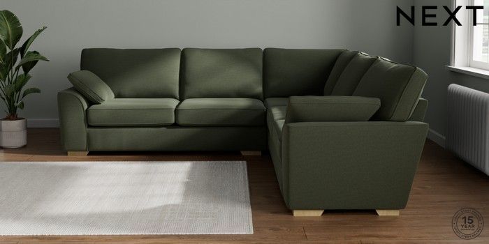 7.2.10 Stamford Large Corner Sofa - Universal Relaxed Linen Look Dark Green Large Square Angle - Light | Made Click here to use our website with more accessibility support, for example screen readers