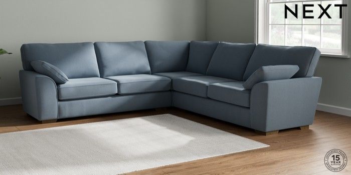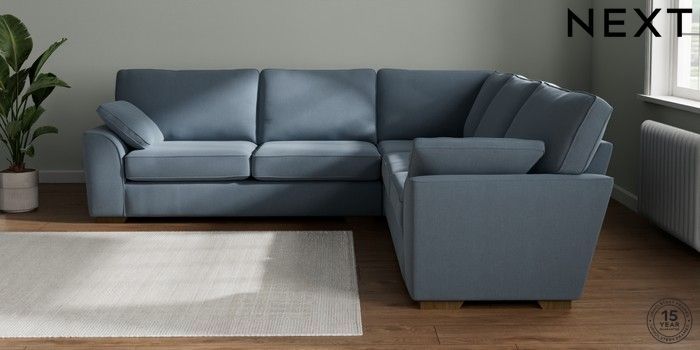 7.2.10 Stamford Large Corner Sofa - Universal Relaxed Linen Look Mid Blue Large Square Angle - Mid | Made Click here to use our website with more accessibility support, for example screen readers