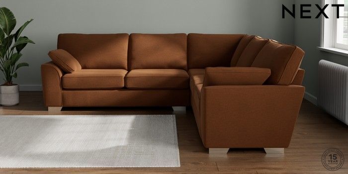 7.2.10 Stamford Large Corner Sofa - Universal Ripple Chenille Mid Rust Brown Large Square Angle - Chrome Metal | Made Click here to use our website with more accessibility support, for example screen readers