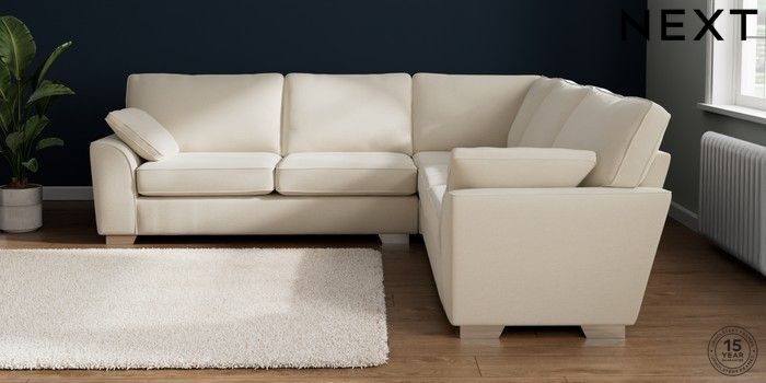 7.2.10 Stamford Large Corner Sofa - Universal Ripple Chenille Oyster Large Square Angle - Chrome Metal | Made Click here to use our website with more accessibility support, for example screen readers