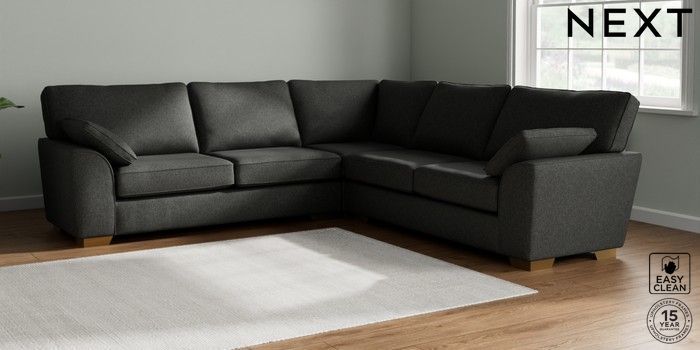 7.2.10 Stamford Large Corner Sofa - Universal Tweedy Blend Easy Clean Charcoal Grey Large Square Angle - Brushed Brass | Made Click here to use our website with more accessibility support, for example screen readers