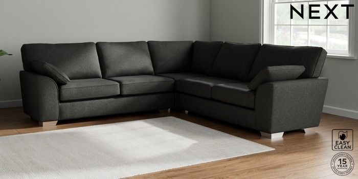 7.2.10 Stamford Large Corner Sofa - Universal Tweedy Blend Easy Clean Charcoal Grey Large Square Angle - Chrome Metal | Made Click here to use our website with more accessibility support, for example screen readers