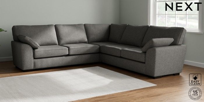 7.2.10 Stamford Large Corner Sofa - Universal Tweedy Blend Easy Clean Dark Grey Large Square Angle - Dark | Made Click here to use our website with more accessibility support, for example screen readers