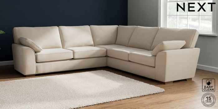 7.2.10 Stamford Large Corner Sofa - Universal Tweedy Blend Easy Clean Oyster Large Square Angle - Mid | Made Click here to use our website with more accessibility support, for example screen readers