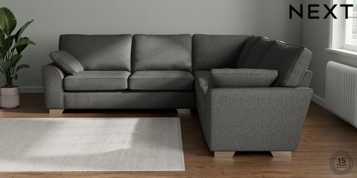 7.2.10 Stamford Large Corner Sofa - Universal Tweedy Chenille Dark Grey Large Square Angle - Chrome Metal | Made Click here to use our website with more accessibility support, for example screen readers