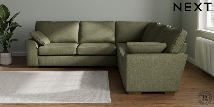 7.2.10 Stamford Large Corner Sofa - Universal Tweedy Chenille Mid Moss Green Large Square Angle - Mid | Made Click here to use our website with more accessibility support, for example screen readers