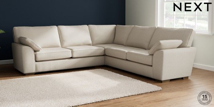 7.2.10 Stamford Large Corner Sofa - Universal Tweedy Chenille Oyster Large Square Angle - Mid | Made Click here to use our website with more accessibility support, for example screen readers
