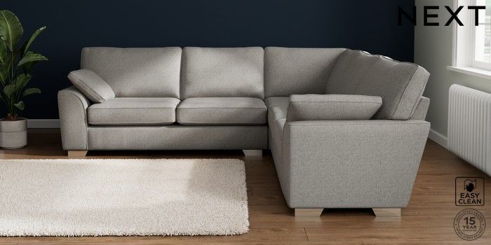 7.2.10 Stamford Large Corner Sofa - Universal Woven Chenille Easy Clean Light Grey Large Square Angle - Chrome Metal | Made Click here to use our website with more accessibility support, for example screen readers