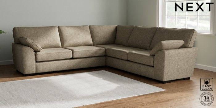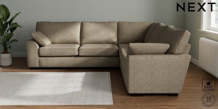 7.2.10 Stamford Large Corner Sofa - Universal Woven Chenille Easy Clean Mid Natural Large Square Angle - Dark | Made Click here to use our website with more accessibility support, for example screen readers