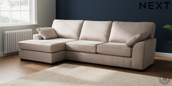 7.2.10 Stamford Large Sofa Chaise - Left Hand Boucle Chenille Light Natural Large Square Angle - Dark | Made Click here to use our website with more accessibility support, for example screen readers