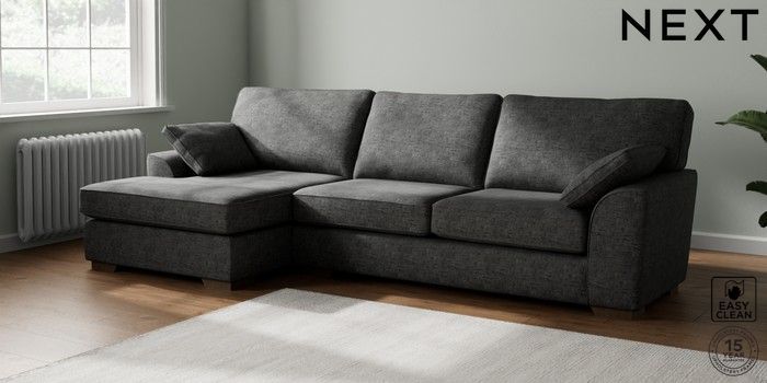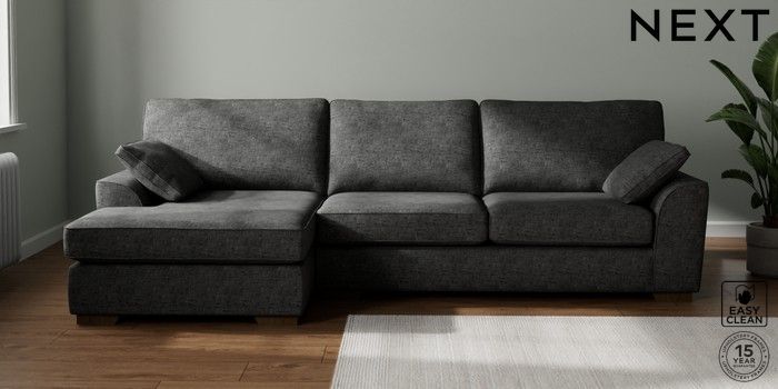 7.2.10 Stamford Large Sofa Chaise - Left Hand Boucle Weave Easy Clean Charcoal Grey Large Square Angle - Mid | Made Click here to use our website with more accessibility support, for example screen readers