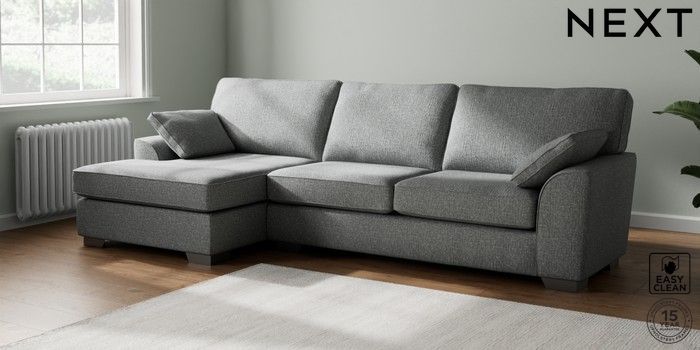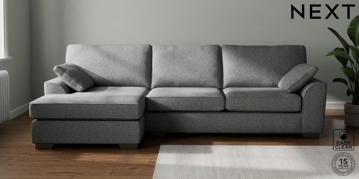 7.2.10 Stamford Large Sofa Chaise - Left Hand Chunky Boucle Easy Clean Mid Grey Large Square Angle - Gunmetal | Made Click here to use our website with more accessibility support, for example screen readers