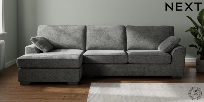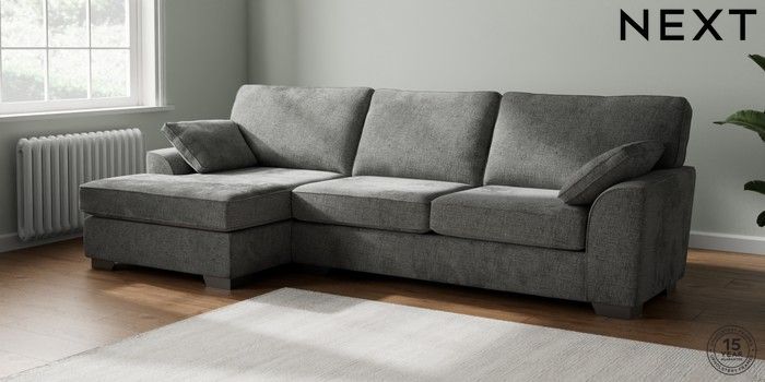 7.2.10 Stamford Large Sofa Chaise - Left Hand Chunky Chenille Dark Grey Large Square Angle - Gunmetal | Made Click here to use our website with more accessibility support, for example screen readers