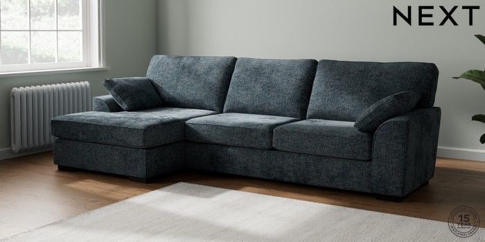 7.2.10 Stamford Large Sofa Chaise - Left Hand Chunky Chenille Dark Navy Blue Large Square Angle - Dark | Made Click here to use our website with more accessibility support, for example screen readers
