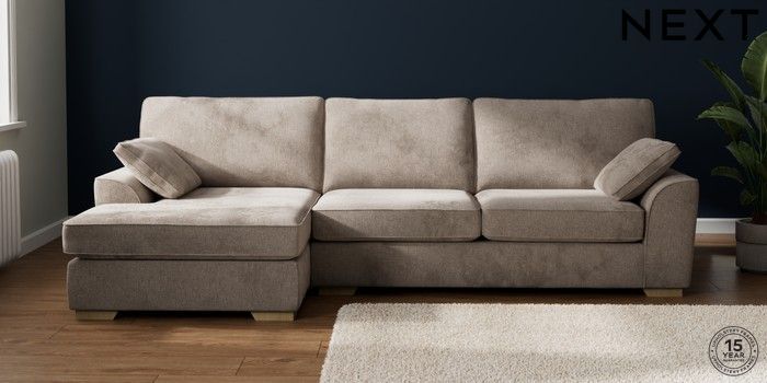 7.2.10 Stamford Large Sofa Chaise - Left Hand Chunky Chenille Light Dove Large Square Angle - Light | Made Click here to use our website with more accessibility support, for example screen readers