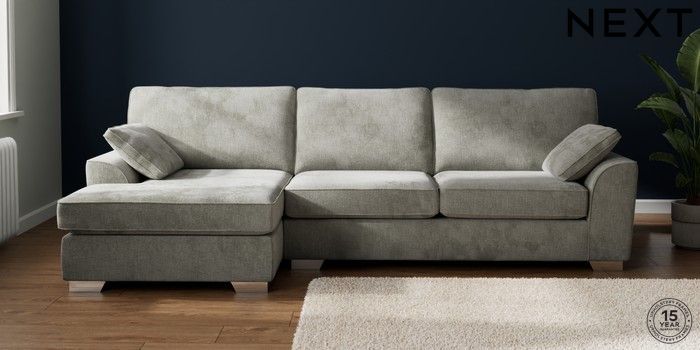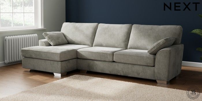 7.2.10 Stamford Large Sofa Chaise - Left Hand Chunky Chenille Light Grey Large Square Angle - Chrome Metal | Made Click here to use our website with more accessibility support, for example screen readers