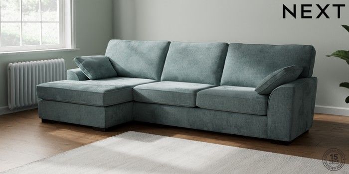 7.2.10 Stamford Large Sofa Chaise - Left Hand Chunky Chenille Light Teal Green Large Square Angle - Dark | Made Click here to use our website with more accessibility support, for example screen readers