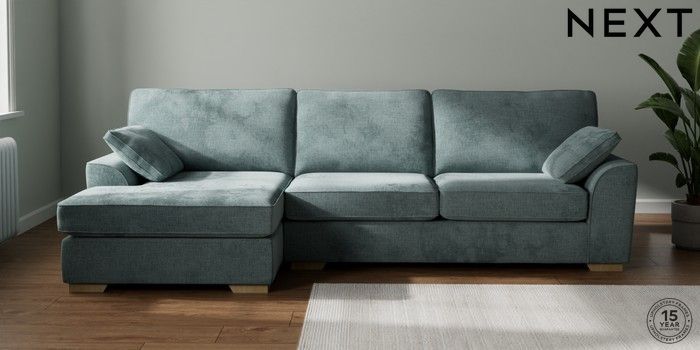 7.2.10 Stamford Large Sofa Chaise - Left Hand Chunky Chenille Light Teal Green Large Square Angle - Light | Made Click here to use our website with more accessibility support, for example screen readers
