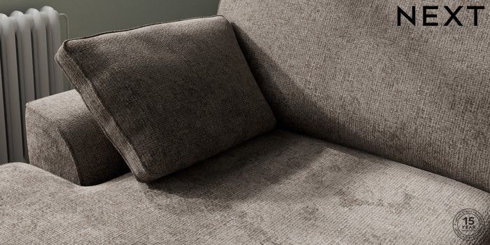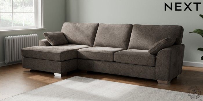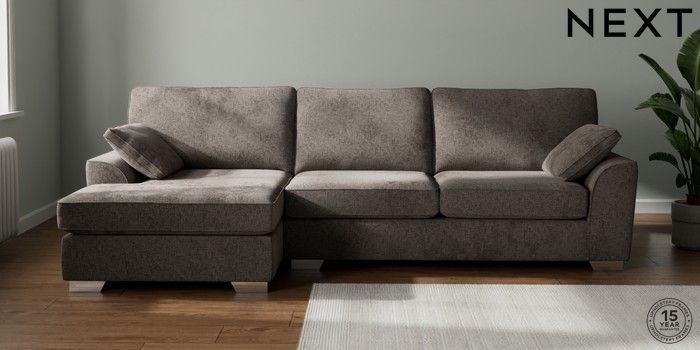 7.2.10 Stamford Large Sofa Chaise - Left Hand Chunky Chenille Mink Brown Large Square Angle - Chrome Metal | Made Click here to use our website with more accessibility support, for example screen readers