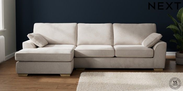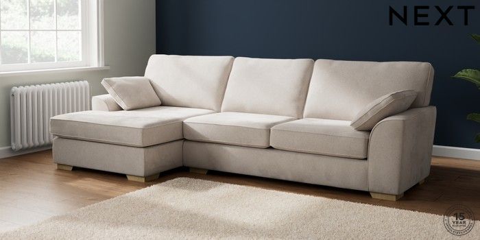 7.2.10 Stamford Large Sofa Chaise - Left Hand Chunky Chenille Oyster Large Square Angle - Light | Made Click here to use our website with more accessibility support, for example screen readers