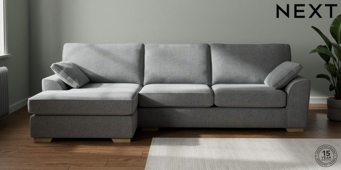 7.2.10 Stamford Large Sofa Chaise - Left Hand Chunky Marl Mid Grey Large Square Angle - Light | Made Click here to use our website with more accessibility support, for example screen readers