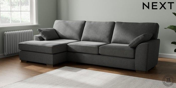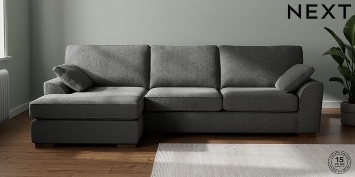 7.2.10 Stamford Large Sofa Chaise - Left Hand Chunky Texture Dark Grey Large Square Angle - Mid | Made Click here to use our website with more accessibility support, for example screen readers