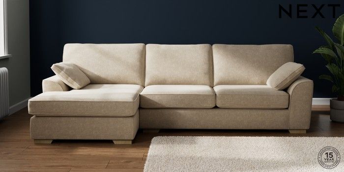 7.2.10 Stamford Large Sofa Chaise - Left Hand Chunky Weave Cream Large Square Angle - Light | Made Click here to use our website with more accessibility support, for example screen readers